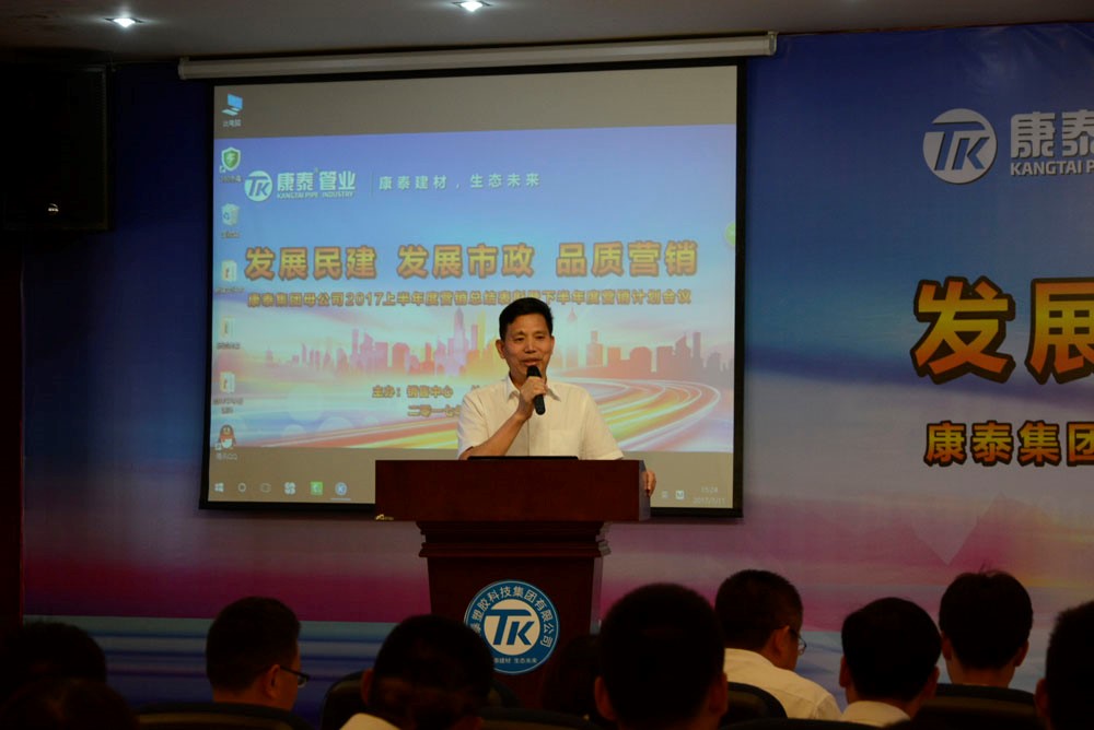 本次會(huì)議是在康泰集團(tuán)全面實(shí)施“創(chuàng)新驅(qū)動(dòng)、品牌營(yíng)銷(xiāo)、智能制造、轉(zhuǎn)型升級(jí)”的五年發(fā)展戰(zhàn)略,把脈發(fā)展、清晰目標(biāo)、資本運(yùn)作的基礎(chǔ)上,為找準(zhǔn)問(wèn)題、科學(xué)對(duì)策、表彰先進(jìn)、改善提升而召開(kāi)的一次具有重要意義的會(huì)議??堤┘瘓F(tuán)董事長(zhǎng)兼總裁林云青,副總裁鄭光鏵、張文霖,各中心總監(jiān)等公司領(lǐng)導(dǎo)出席會(huì)議,母公司銷(xiāo)售中心全體營(yíng)銷(xiāo)人員共計(jì)100余人參加會(huì)議。