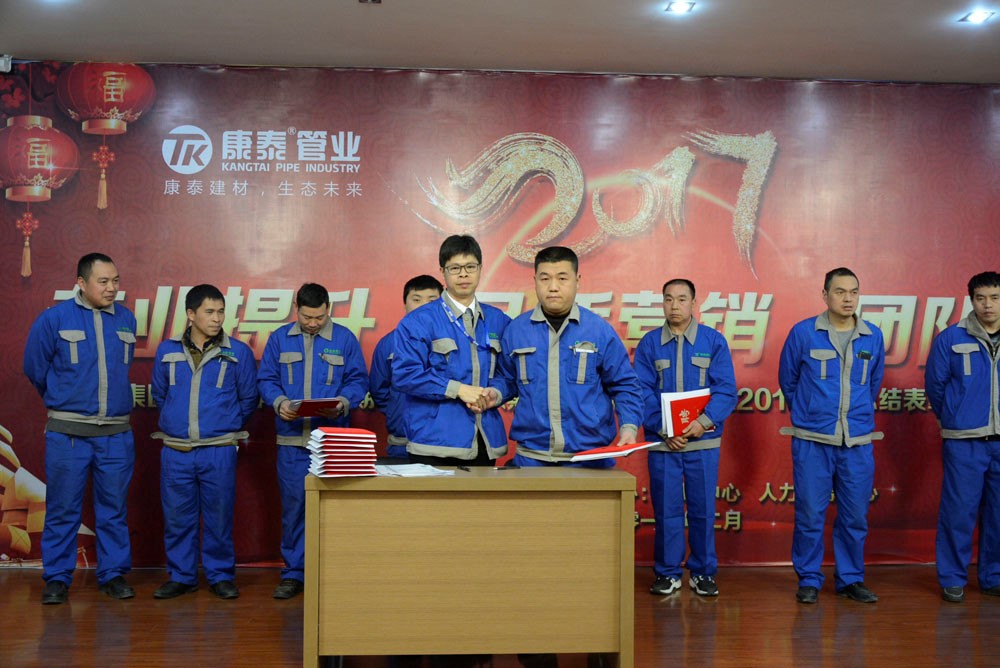 ? ? ? ?會議最后,在熱烈的掌聲中,林總裁作了重要的講話。林總裁表示,康泰發(fā)展至今,已經(jīng)經(jīng)歷了18個年頭。經(jīng)過18年的發(fā)展和積累,在全體員工的共同努力下,公司的規(guī)模和形象不斷擴(kuò)大,市場占有量名列前茅,品牌知名度也得到了大大的提升。在此,對全體員工的付出表示真誠的感謝。林總裁強(qiáng)調(diào),隨著物聯(lián)網(wǎng)的發(fā)展,管道行業(yè)來到了大洗牌的分水嶺,企業(yè)間的競爭越來越激烈。并且,隨著市場思維的改變,客戶的需求也在調(diào)整和轉(zhuǎn)變。我們必須也要調(diào)整,不調(diào)整就要落后,落后就要挨打。他要求,生產(chǎn)系統(tǒng)的每個車間一定要做到敢亮劍、敢做第一,產(chǎn)品質(zhì)量第一、生產(chǎn)成本最低第一、車間形象規(guī)范第一,不斷提高生產(chǎn)后勤保障支撐能力,為營銷服務(wù)。林總裁最后表示,公司的每個一個高層管理者包括我自己在內(nèi),都是一個后勤支持者,需要我們做的地方,我們一定全力以赴,支持生產(chǎn)系統(tǒng)工作。