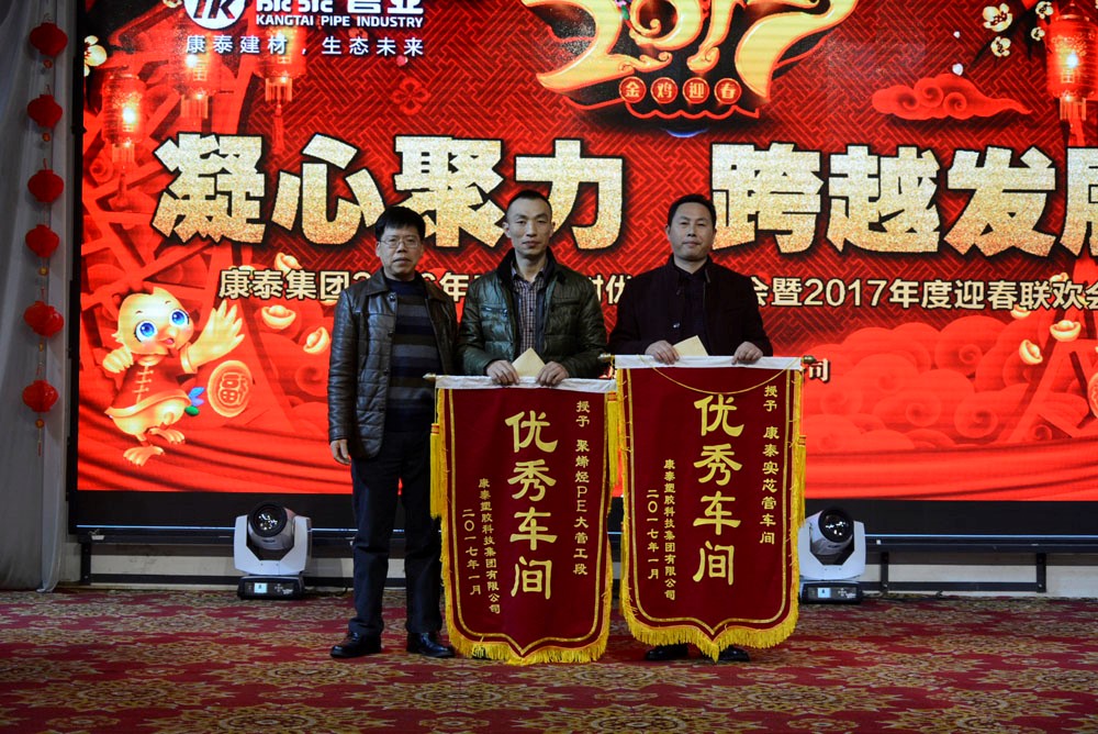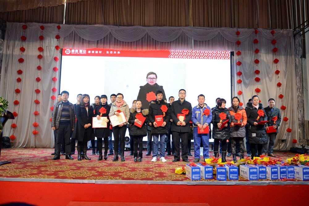 ? ? ? ? 大會(huì)最后,在全體員工熱烈的掌聲中,集團(tuán)董事長(zhǎng)兼總裁林云青發(fā)表了重要講話。林總裁首先對(duì)獲獎(jiǎng)的單位和個(gè)人表示了祝賀,對(duì)全體康泰員工在2016年的辛勤付出表示了感謝,并期望所有獲獎(jiǎng)單位和個(gè)人在工作中起好模范帶頭作用,再接再厲,頑強(qiáng)拼搏,做出更加優(yōu)異的成績(jī)。林總裁表示,2016年在中國(guó)經(jīng)濟(jì)新常態(tài)、塑料管道行業(yè)加劇大洗牌的影響下,全體康泰人不斷探索,不斷拼搏,全力以赴,實(shí)現(xiàn)了同比增長(zhǎng)的目標(biāo)。這是公司全體員工共同努力的結(jié)果,我代表公司股東、董事及管理團(tuán)隊(duì)向你們表示衷心的感謝。今天不代表昨天,明天的成功是今天努力的結(jié)果。林總裁表示,希望全體康泰人在2017年里,再接再厲,取得更大成功。