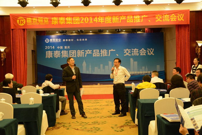 ???????此次康泰集團2014年度新品(重慶)推廣、交流會議主題鮮明,宣傳海報林立、設置了新產(chǎn)品展示區(qū),集中展示康泰集團2014年度研發(fā)的環(huán)保MPE、MPVE?排污管道系統(tǒng)、PP超靜音排水、排污管道系統(tǒng)、HDPE同層排水管道系統(tǒng)、加強型漩流降噪特殊單立管道系統(tǒng)五款新產(chǎn)品。歷時2.5小時的會議秉承“康泰建材,生態(tài)未來”,堅持“科技、質(zhì)量、價值、共贏”的市場競爭理念,致力于成為生態(tài)建材行業(yè)領導者企業(yè)。發(fā)展是永恒的主題,合作是時代的潮流。康泰以此次新品推廣交流會為契機,共筑交流平臺,以更加開放靈活的理念,更加務實的作風,更加科學完善的研發(fā)推廣政策,加強與社會各界合作交流,共同推進行業(yè)的高標準,可持續(xù)發(fā)展。會議高效、緊湊,圓滿結(jié)束。