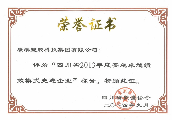 ?????? 卓越績效模式是80年代后期美國創(chuàng)建的一種世界級企業(yè)成功的管理模式,其核心是強(qiáng)化組織的顧客滿意意識和創(chuàng)新活動,追求卓越的經(jīng)營績效,引導(dǎo)企業(yè)持續(xù)改進(jìn),是不斷提升企業(yè)管理水平和綜合競爭能力的有效途徑??堤┘瘓F(tuán)自2009年開始申報“省實(shí)施卓越績效模式先進(jìn)企業(yè)”以來,連續(xù)六年獲此殊榮,實(shí)現(xiàn)了康泰集團(tuán)質(zhì)量管理目標(biāo)。