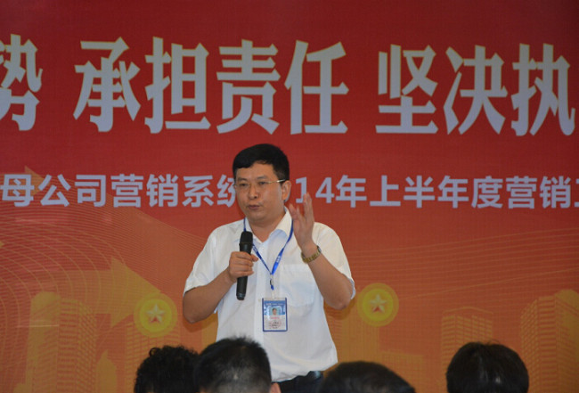 ? ? ? 7月11日8:20,母公司營銷系統(tǒng)全員個個精神飽滿、神采奕奕,在高亢激昂的《康泰之歌》中開啟全天總結(jié)匯報會議,成都、四川、重慶、云南、西安商務(wù)部、網(wǎng)絡(luò)部、市政部、家裝事業(yè)部、型材事業(yè)部、大客戶部十個團隊,分別就2014年上半年度工作總結(jié)、下半年度工作規(guī)劃作出匯報。最后由營銷中心何朝暉總監(jiān)作營銷中心上半年度總結(jié)、下半年度形勢分析和工作規(guī)劃部署,何總首先對各團隊負責(zé)人的工作匯報和規(guī)劃作一對一的詳細點評和指導(dǎo),并在總結(jié)中說道:“上半年營銷中心全員團結(jié)一致、全力以赴,完成了上半年度的目標,可喜可賀。但要清醒看到房地產(chǎn)市場重大拐點的嚴峻形勢,完成下半年銷量指標充滿挑戰(zhàn),要求營銷系統(tǒng)全員統(tǒng)一思想,堅定以認清形勢、承擔(dān)責(zé)任、堅決執(zhí)行、挑戰(zhàn)發(fā)展的思路,將每項工作落到實處,奮力拼搏爭取圓滿完成下半年經(jīng)營指標” 。
