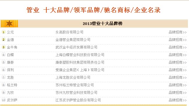 ??? 2014年6月,由品牌排行網(wǎng)主辦的“2014年度中國(guó)管業(yè)十大品牌評(píng)選” 活動(dòng)于6月26日完美降下帷幕,康泰塑膠科技集團(tuán)有限公司榮膺“2014年度中國(guó)管業(yè)十大品牌”。本次活動(dòng)以穩(wěn)定大型企業(yè)發(fā)展、帶動(dòng)行業(yè)品牌化發(fā)展為目標(biāo),以促進(jìn)民族品牌為主題,面向所有行業(yè)所有品牌開(kāi)放,公開(kāi)評(píng)選。本次評(píng)選異?;鸨?,不但吸引了國(guó)內(nèi)近一半的管業(yè)品牌和經(jīng)銷(xiāo)商的參與,同時(shí),也被新浪、網(wǎng)易、人民、新華、中國(guó)網(wǎng)等70多家知名網(wǎng)絡(luò)媒體高度關(guān)注,是國(guó)內(nèi)管業(yè)行業(yè)少有的大型權(quán)威品牌評(píng)選活動(dòng)。中央電視臺(tái)、人民日?qǐng)?bào)等權(quán)威媒體更是爭(zhēng)相報(bào)道。本次評(píng)選,不但成為管業(yè)領(lǐng)軍者齊聚的盛會(huì),更是眾多國(guó)內(nèi)優(yōu)秀品牌嶄露頭角,表現(xiàn)自我的絕佳機(jī)會(huì)。經(jīng)過(guò)緊張激烈的網(wǎng)上投票、資質(zhì)審核以及消費(fèi)者商譽(yù)評(píng)價(jià)。
