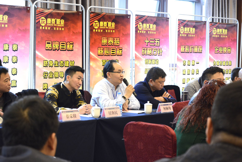 副總裁鄭光鏵在會(huì)上作了題為《轉(zhuǎn)型升級(jí) 深度合作》報(bào)告。從經(jīng)銷(xiāo)商面臨的挑戰(zhàn)、國(guó)家政策導(dǎo)向、行業(yè)前景、康泰發(fā)展目標(biāo)、戰(zhàn)略與目標(biāo)匹配、經(jīng)銷(xiāo)商的定位、經(jīng)銷(xiāo)商深度合作模式七個(gè)方面作了闡述指出,塑膠建材行業(yè)仍然是個(gè)好行業(yè),是個(gè)挑戰(zhàn)與機(jī)遇并存的行業(yè),康泰也在積極做整體管理、統(tǒng)一營(yíng)銷(xiāo),加快產(chǎn)業(yè)+資本轉(zhuǎn)型升級(jí)。廣大經(jīng)銷(xiāo)商要以康泰為平臺(tái)支撐,積極整合資源,共同應(yīng)對(duì)行業(yè)大洗牌的挑戰(zhàn),實(shí)現(xiàn)合作共贏。
