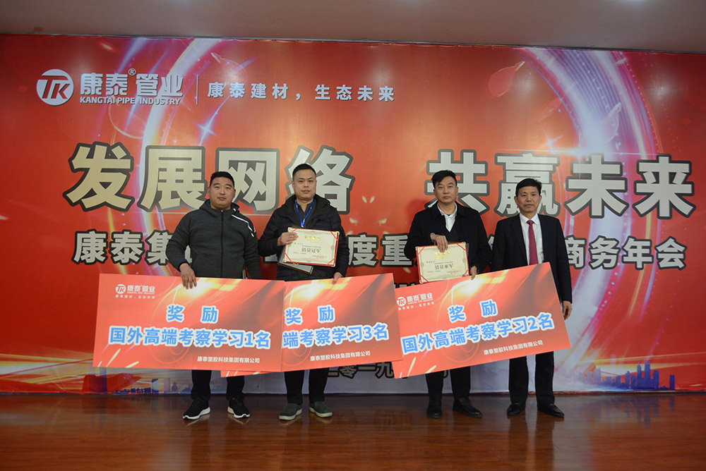在結(jié)束完所有議程后,18時許,會議在熱烈的掌聲中圓滿閉幕。歲序更替,華章日新。2019年,對于康泰集團來說是充滿期待和希望的一年??堤┘瘓F致力于做“中國塑膠管道工程集采第一供應(yīng)商”的發(fā)展定位,以“為城市建設(shè)集成供應(yīng)生態(tài)管道系統(tǒng),管通全球”的企業(yè)使命,打造實現(xiàn)“百億康泰、百年康泰,中國民營企業(yè)500強”,全面構(gòu)建實現(xiàn)品質(zhì)康泰、智能康泰、生態(tài)康泰、康泰+跨越發(fā)展。讓我們攜起手來,共同開創(chuàng)康泰集團更加美好的明天!