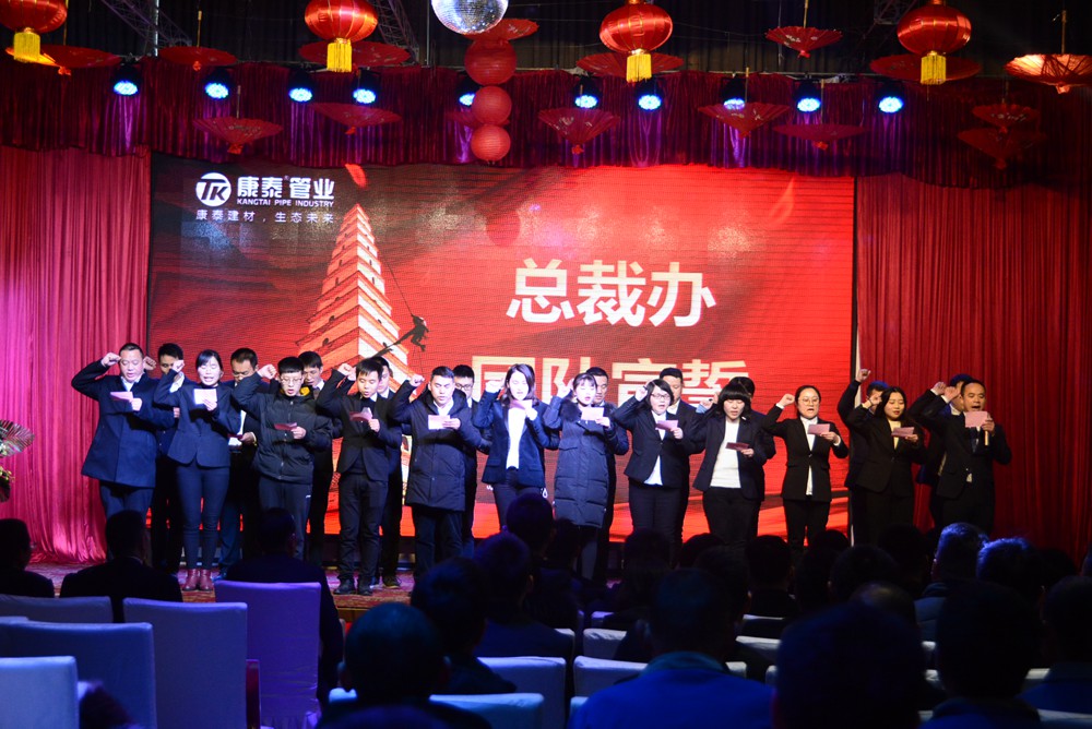 本次年會(huì)的主題是,凝聚發(fā)展 未來更好。凝聚發(fā)展:凝聚戰(zhàn)略、凝聚思維、凝聚目標(biāo)、上下貫通、發(fā)展共贏;未來更好:轉(zhuǎn)型升級(jí)、堅(jiān)定戰(zhàn)略、優(yōu)化策略、強(qiáng)化執(zhí)行、未來更好。會(huì)議的目的是,總結(jié)2018年度的業(yè)績(jī)、亮點(diǎn)和不足,宣貫集團(tuán)五年戰(zhàn)略、三年規(guī)劃及2019年度重點(diǎn)工作方向;樹立標(biāo)桿、提升員工的凝聚力和歸屬感;同時(shí),進(jìn)行宣誓、動(dòng)員,激發(fā)全體康泰人奮發(fā)向前的氛圍及正能量。